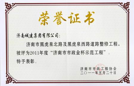 济南市黑虎泉北路及黑虎泉西路蹊径整修工程被评为2011年度济南市市政金杯树模工程