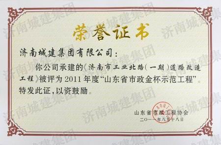 济南市工业北路(一期)蹊径刷新工程被评为2011年度山东省市政金杯树模工程