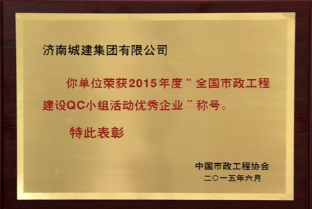 集团荣获2016年度“天下市政工程建设QC小组运动优异企业”称呼